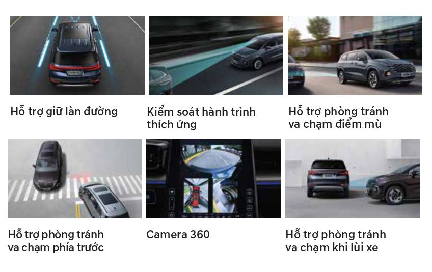 Trang bị an toàn không kém cạnh đối thủ. Ngoài các hệ thống hỗ trợ cơ bản mà gần như xe nào cũng có như hỗ trợ phanh (ABS, EBD, BA), cân bằng điện tử, hỗ trợ khởi hành ngang dốc, chống trượt... Hyundai Custin còn có cảnh báo điểm mù, cảm biến áp suất lốp, camera 360 độ, 6 túi khí cùng một số tính năng tiên tiến như hỗ trợ giữ làn đường, ga tự động thích ứng, đèn pha tự động, cảnh báo mất tập trung... - Ảnh: Hyundai