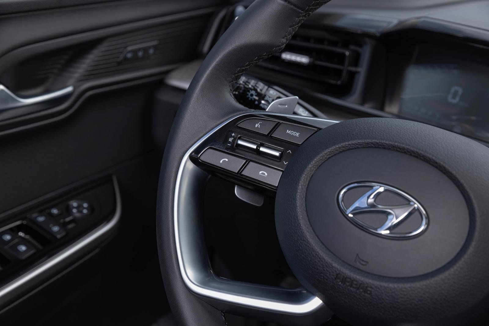 Vô-lăng xe Hyundai Custin tạo hình 4 chấu độc đáo, tích hợp nhiều nút chức năng hỗ trợ lái