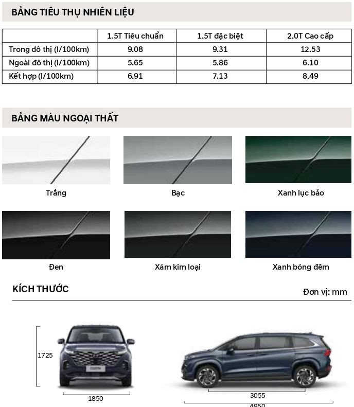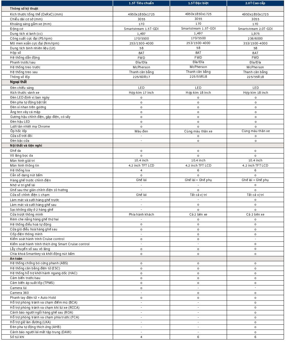 | Custin 1.5T-GDi Đặc biệt : | 945.000.000 đ |