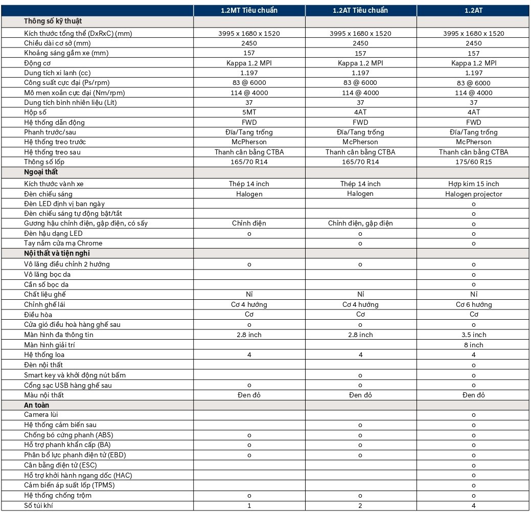 Sedan 1.2 MT tiêu chuẩn: 380.000.000 đ