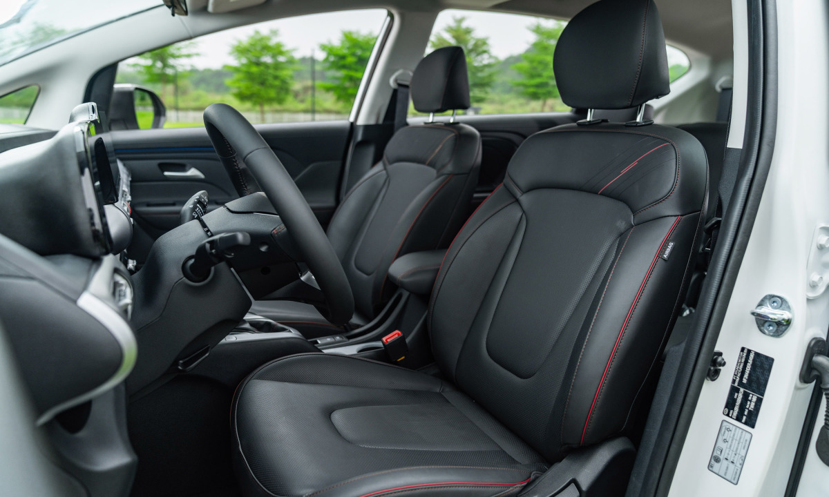 Xe được trang bị ghế ngồi bọc da, chống bụi bẩn trong quá trình sử dụng lâu dài. Các chi tiết da cũng xuất hiện kết hợp cùng chất liệu nhựa cao cấp trong cabin xe giúp tăng thêm phần lịch lãm.