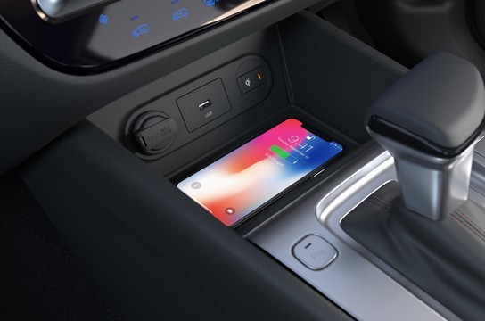 Chiếc xe tiên phong trong phân khúc với sạc không dây chuẩn Qi tích hợp hệ thống làm mát giúp cải thiện công suất sạc lên đến 10W, đồng thời làm giảm tình trạng nóng máy điện thoại trong quá trình sạc. Đây cũng là chiếc xe đầu tiên trong phân khúc hỗ trợ Apple Carplay/Android Auto không dây.