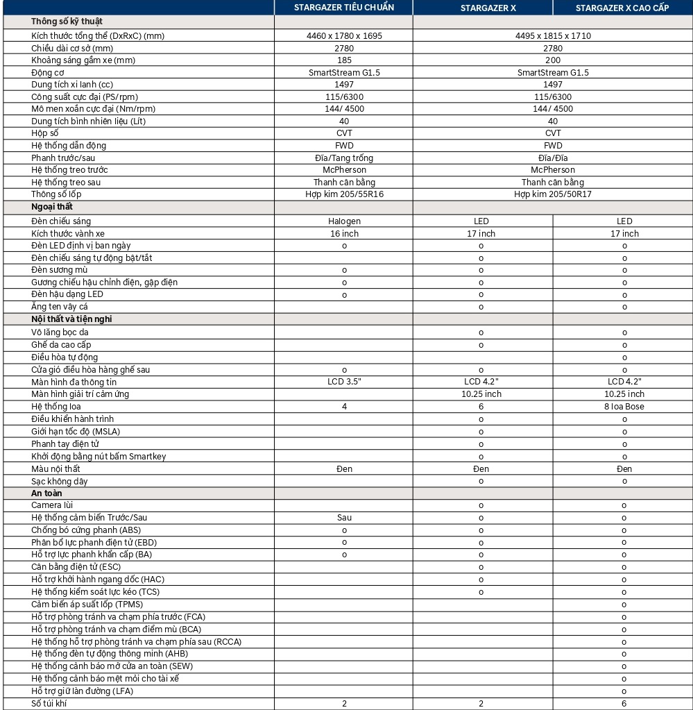Thông số Hyundai Stargazerx