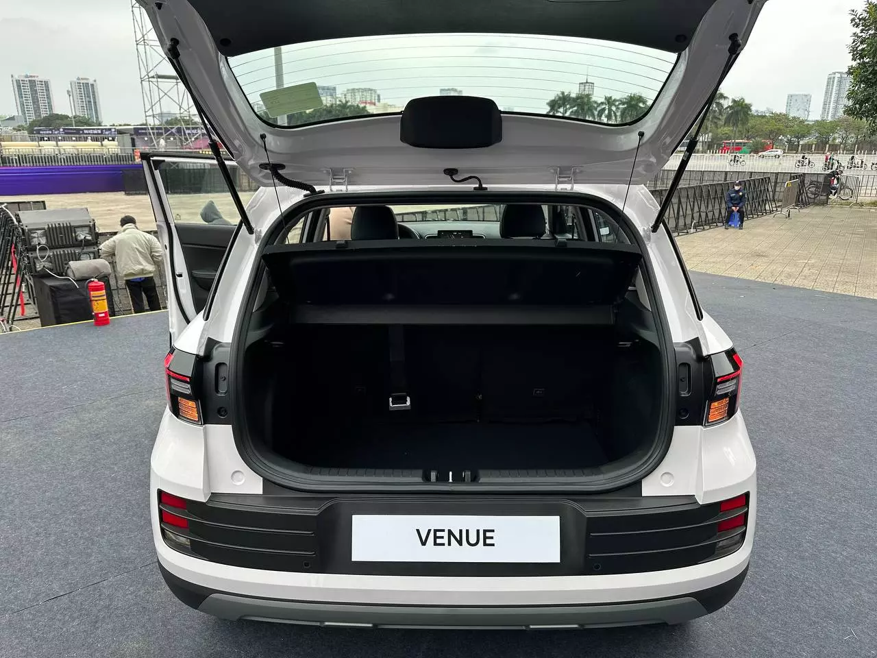 Khoang hành lý của Hyundai Venue rất ấn tượng với không gian rộng rãi, chủ yếu đáp ứng nhu cầu chở đồ hành lý hàng ngày. Thiết kế linh hoạt và thông minh giúp tối ưu hóa không gian, đồng thời tạo điều kiện thuận lợi cho việc sắp xếp và lưu trữ đồ đạc. Kích thước hợp lý của khoang hành lý giúp Hyundai Venue trở thành một lựa chọn phù hợp cho những chuyến đi dài ngày hoặc những hoạt động giải trí ngoại ô.