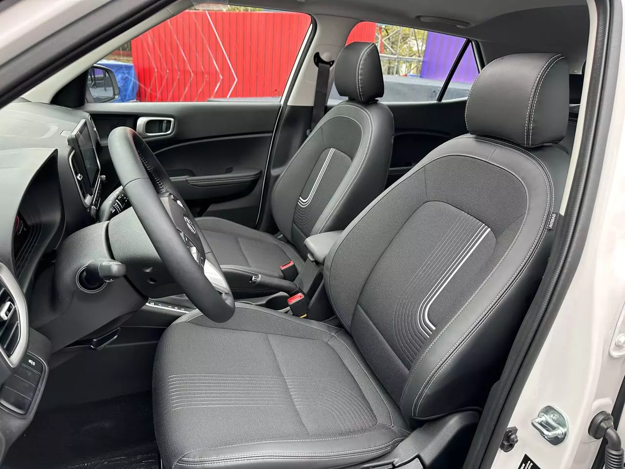 Ghế xe của Hyundai Venue được trang bị chất liệu bọc da pha nỉ, tạo nên sự thoải mái và sang trọng. Điều này giúp cung cấp trải nghiệm lái xe thú vị và thoải mái cho người lái cũng như hành khách. Chất liệu da pha nỉ thường kết hợp giữa độ bền của da và sự thoải mái của nỉ, mang đến vẻ ngoại thất hiện đại và nội thất trang nhã cho Hyundai Venue.